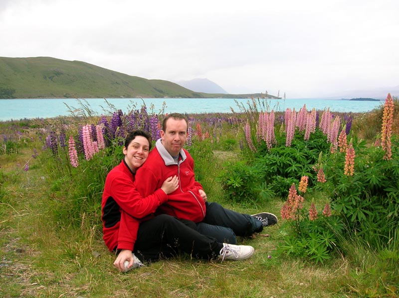 | Lupins (the flower) lined the roads in a myriad of colours. Here at Lake Tekapo. |