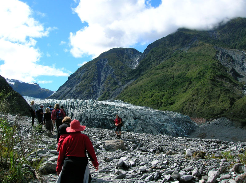 | The glacier is moving at 1m/day and melting at 80cm/day, hence advancing 20cm per day or 70m per year. |
