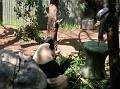 Pandas don't like to smile for photos, or even face the...