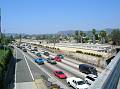 LA freeway with Hollywood sign in the background... up...