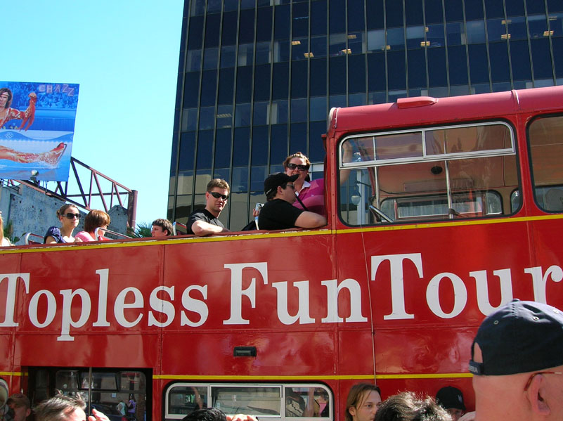 Andrew, Chris and Lol having topless fun.