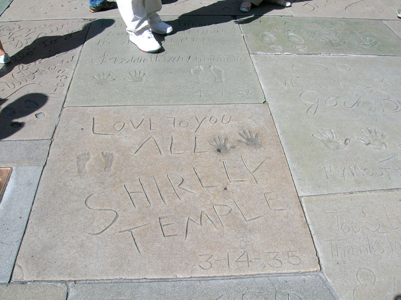 | The real thing - Shirley's tiny hands and feet imprinted outside Grauman's on Hollywood Boulevard. |