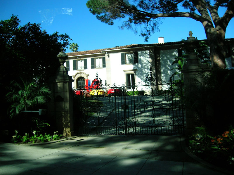 | The Marciano millions on display. The Guess? clothing designer's home in Beverly Hills, with 10 Ferraris parked in the driveway, alternating red and yellow. |