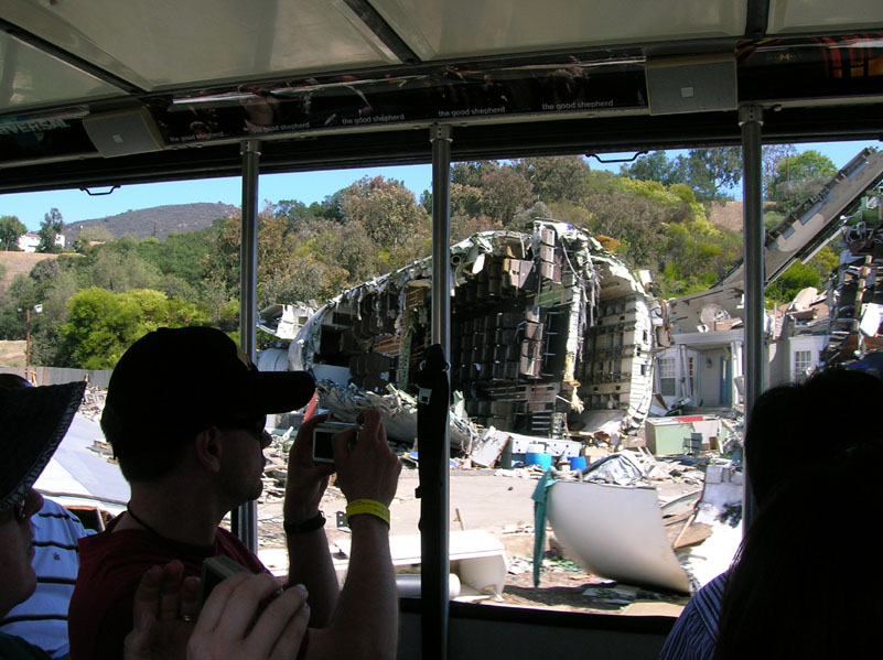 | A permanently maintained dressed set on the Universal lot - the aeroplane crash site from Spielberg's "War Of The Worlds". Every scrap of debris had to be put there deliberately! |