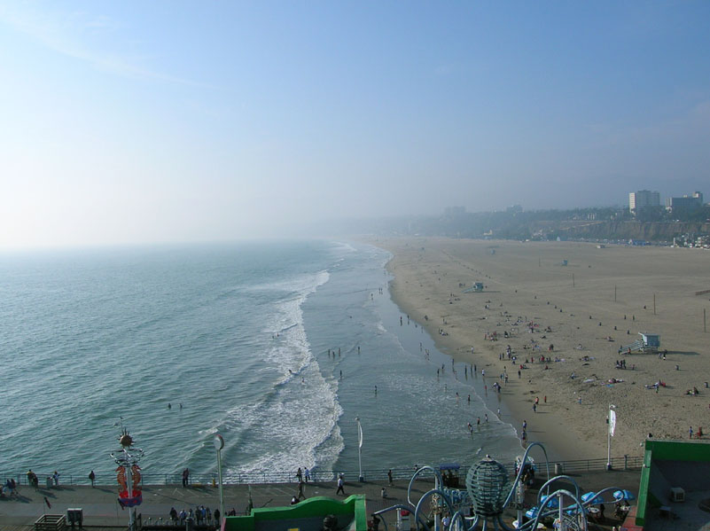 | Apparently swimming before Easter is OK on Santa Monica beach ... bbrrr! |
