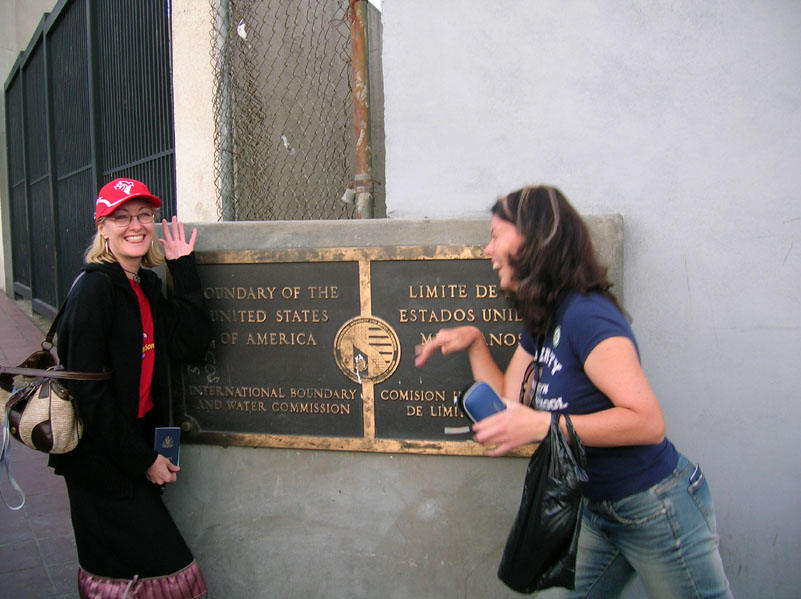 | Denise and Kathryn attempt to mime the conflict at the America/Mexico border. |